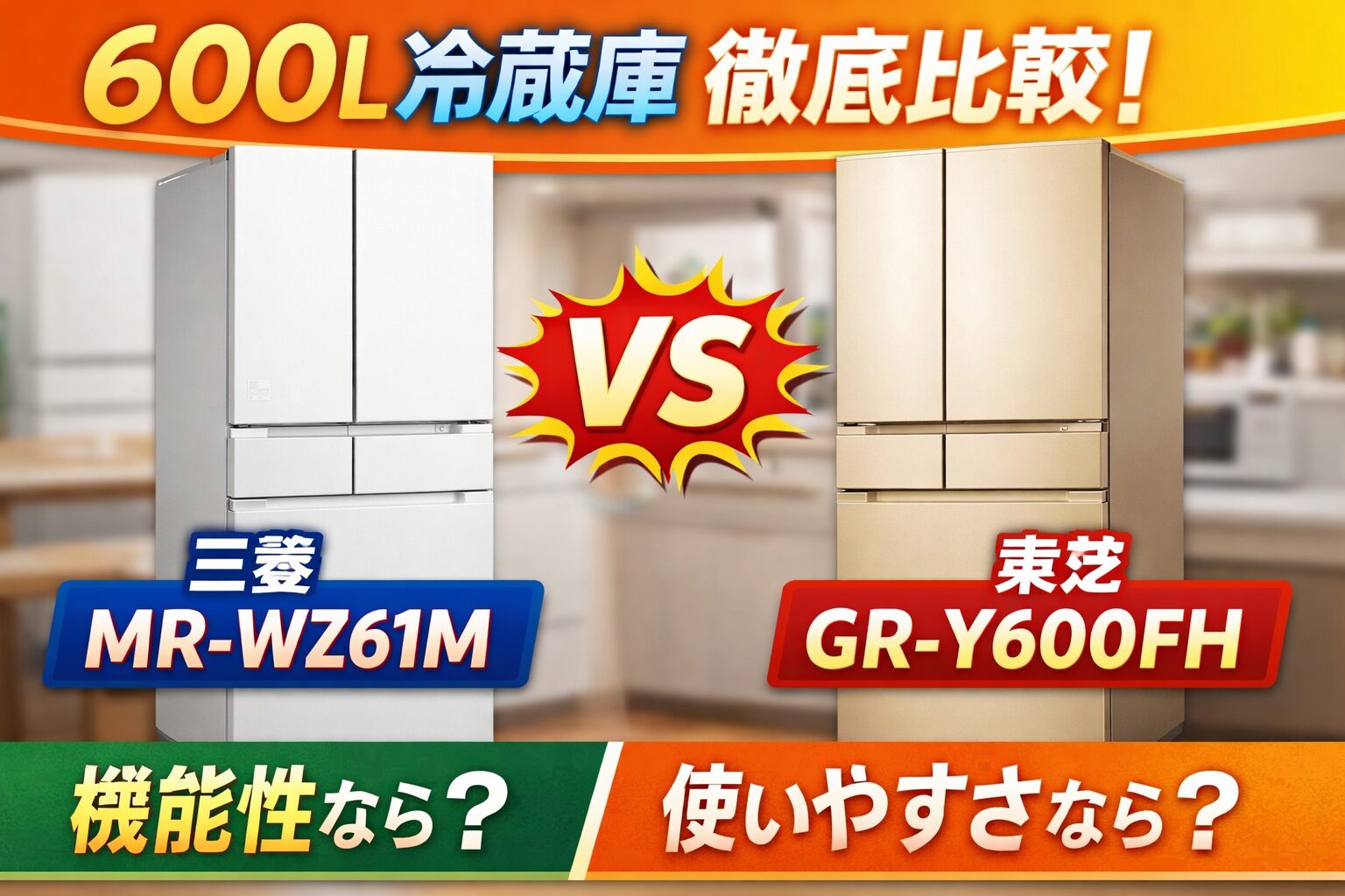 「三菱 MR-WZ61M と 東芝 GR-Y600FH の違い」