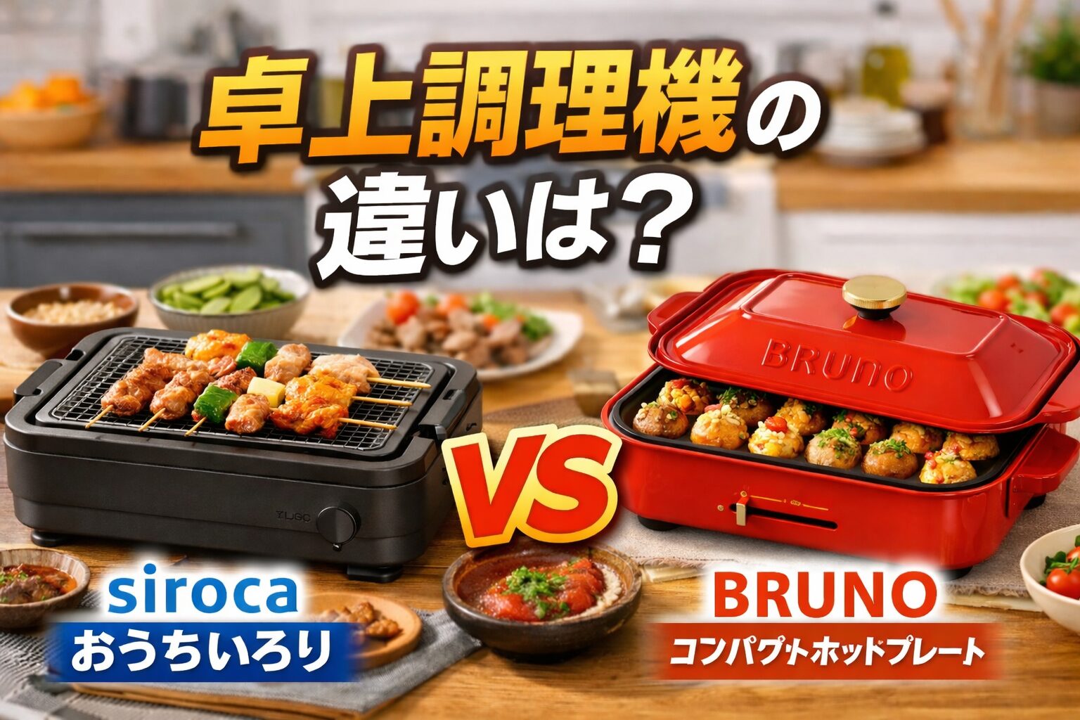 「siroca おうちいろり」と「BRUNO コンパクトホットプレート」、どちらも食卓で手軽に調理が楽しめる人気の卓上調理機です。